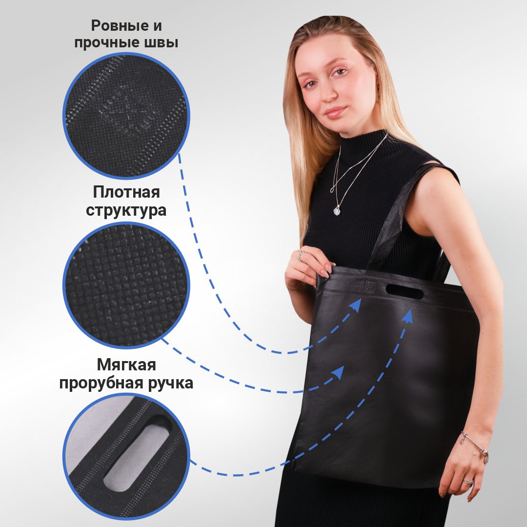 Многоразовый шоппер из нетканого материала с надежными пришивными ручками. Сумка из спанбонда приятная на ощупь, легкая и компактная.