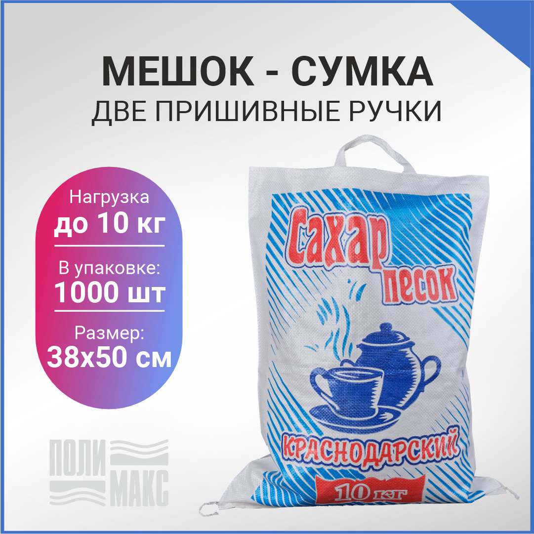 Сумка из полипропилена предназначена для хранения и перевозки сахара. Этот материал защищает от перепадов температур, ультрафиолета, механического воздействия. Позволяет сохранить свойства продукта.
